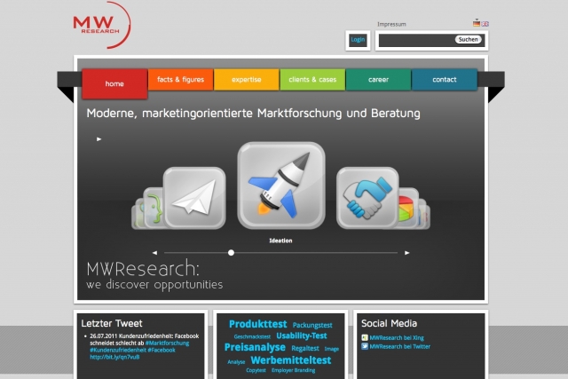 (IINews) - Die Hamburger Marktforscher von MW Research präsentieren sich Kunden und Interessierten ab sofort mit einer gründlich überarbeiteten und neu gestalteten Website: www.mwresearch.de. Das Unternehmen positioniert sich damit als führender Dienstleister für internationale Marken-Marktforschung. MW Research legte Konzeption, Gestaltung und Programmierung der Internetpräsenz in die Hände von Alexanderplatz Hamburg.