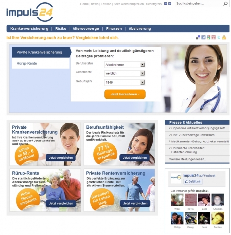 Private Krankenversicherung und Krankenzusatzversicherung, Berufsunfähigkeits-versicherung, Riester-Rente und viele weitere Finanz- und Versicherungsthemen. Impuls24 bietet Ihnen dazu übersichtliche und verständliche Informationen!