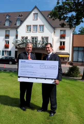 (IINews) - Neu-Isenburg, 19. August 2011 - Der Gewinn war begehrt: Bei einer Verlosung auf dem 1. Sommerball im Kempinski Hotel Gravenbruch Frankfurt kamen beim Losverkauf insgesamt 2.040 Euro zusammen. Zu gewinnen gab es ein "Dinner for two" auf dem Dach des Frankfurter Trianon-Hochhauses. Der gesamte Erlös der Aktion wird der Kinderhilfestiftung Frankfurt e. V. gespendet. Hoteldirektor Thomas M. Fischer übergab den entsprechenden Scheck an den Vorstandsvorsitzenden der Kinderhilfestiftung, Bruno Seibert.