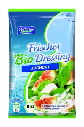 Das neue Bio Dressing (ca. 0,69 Euro) im praktischen 75-Milliliter Portionsbeutel ist ab August in den beiden Sorten „Joghurt“ und „Italian“ erhältlich. Wie alle Dressings von Elsdorfer wird auch das neue Produkt schonend verarbeitet und frisch abgefüllt. Das cremige Joghurt-Dressing mit fein abgestimmten Kräutern schmeckt besonders lecker zu verschiedenen Blattsalaten, Gemüse und Gemüsesticks.