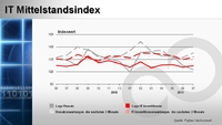- Bei der Ausgabenplanung konnte sich der Index ebenfalls verbessern und stieg um vier Punkte auf 124, was die Investitionsabsichten der deutschen Mittelständler verdeutlicht.