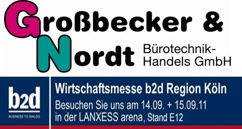 Die Großbecker&Nordt Bürotechnik Handels GmbH aus Köln wird auf der regionalen Mittelstandsmesse b2d in der Kölner Lanxessarena vom 14.09. - 15.09.2011 erstmalig ihr gesamtes Leistungsspektrum zu IT-Infrastrukturlösungen präsentieren. www.gn-koeln.de
