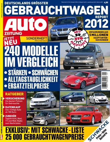 Das Sonderheft Auto Zeitung Gebrauchtwagen 2012 mit GTÜ-Report ist für 4,50 Euro im Zeitschriftenhandel erhältlich.