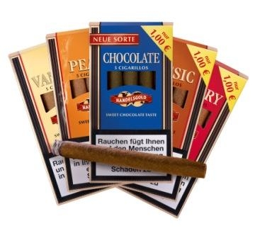 (IINews) - Vanilla, Classic, Peach, Cherry und Chocolate - so heißen die fünf Kassenschlager der Handelsgold Sweet Cigarillos Serie. Seit Einführung der Handelsgold Sweets in 2008 hat sich ihr Absatz in Tankstellen, im Fach- und Lebensmittelhandel fulminant entwickelt. Der attraktive Preis von 1 Euro für 5 Cigarillos, angesagte Aromen und eine aufmerksamkeitsstarke Präsentation am POS ließen Verbraucher spontan zu den Handelsgold Sweets greifen.