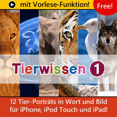 Die App für iPhone und iPad stellt Kindern 12 Tiere in Wort und Bild vor - zum Vorlesen, Selberlesen und auch zum Hören.