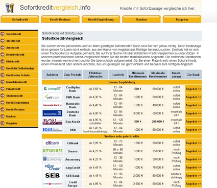 Den Online-Kredit der TARGOBANK können Kunden bereits ab 1.500 Euro und bis zu einer max. Nettokreditsumme von 50.000 Euro abschließen. Das Top-Angebot für Neukunden beinhaltet den Kredit bereits ab bonitätsunabhängigen 3,45 % effektiven Jahreszinsen. Dieser Einstiegszins ist fest und gilt für eine Laufzeit von 12 Monaten. Damit sichert sich die TARGOBANK eine klare Top-3-Position im Darlehens-Vergleich unter http://www.sofortkreditvergleich.info/kreditvergleich.html