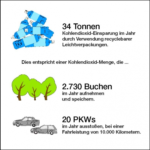 Gemeinsam mit dem Fraunhofer-Institut für Umwelt-, Sicherheits- und Energietechnik hat das Recyclingunternehmen Interseroh Dienstleistungs GmbH errechnet, wie groß der Beitrag zur Kohlendioxid-Einsparung durch das Verwenden von recyclebaren Leichtverpackungen durch Lichtenauer ist.