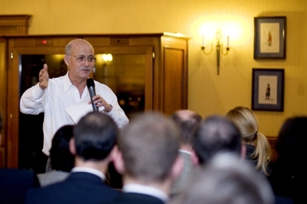 Jeremy Rifkins brillante Analysen wurden mit lang anhaltendem Beifall honoriert. Klaus Schweinsberg moderierte souverän die sich anschließende Debatte um Wirtschaftstrends, demographischen Wandel und Klimawandel.