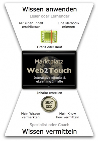Wissen nutzen, Wissen vermitteln und verkaufen mit einem Fingerzeig (Touch). Spezialisten und Coaches haben in Web2Touch einen Marktplatz für ihr wertvolles Know How. Speziell für iPad, Tablet´s mit Touch-Bedienung & alle modernen Webbrowser