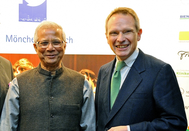 Der 71-jährige Wirtschaftsexperte Muhammad Yunus ist Gründer und ehemaliger Geschäftsführer der Mikrokredite vergebenden Grameen Bank. Für die Förderung wirtschaftlicher und sozialer Entwicklungen von unten wurden er und die von ihm gegründete Bank 2006 mit dem Friedensnobelpreis ausgezeichnet.