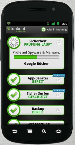 Lookouts kostenlose App für Android: Lookout Free bietet einen Basis-Schutz und kann kostenlos im Android Market heruntergeladen werden. Der Basisschutz umfasst: