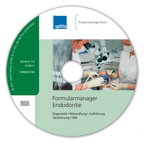 Der neue Formularmanager von Spitta dient dazu, standardisierte, effektive und effiziente Arbeitsprozesse in der Praxis zu installieren. Rund 100 druckfertige individualisierbare Formulare, Checklisten, Anamnese- und Arbeitsbögen halten sämtliche Prozesse der endodontischen Diagnostik und Behandlung fest. Zuständigkeitsprotokolle und Dokumentationsvorlagen optimieren das Bestell-, Wartungs- und Inspektionsmanagement. Aktuelle Geräte-, Instrumente- und Materialbeschreibungen geben den Überblick über die vielfältigen Marktinnovationen und aktuellen Trends in der Endodontie. Die neue Software kann zum Aufbau eines praxisinternen Qualitätsmanagements (QM) eingesetzt werden.