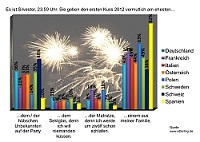 Große Gemeinsamkeiten ließen sich über nationale Grenzen hinweg beim Wunsch feststellen, die Silvestersause nicht verpassen zu wollen. Der höchste prozentuale Anteil derjenigen, die den Jahreswechsel am liebsten schlafenderweise erleben würden, war mit jeweils 18% bei den französischen und polnischen Singles festzustellen und damit durchweg gering zu nennen. Zudem will ein noch kleinerer Anteil aller Befragten niemandem einen Silvesterkuss geben. Hier zeigen sich die deutschen Singles am zugeknöpftesten: 11% kleben lieber an ihrem Sektglas als an fremden oder auch bekannten Lippen und Wangen.