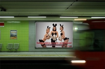 "Tierschutzplakate mit Jahrtausend-Playmate in Berliner U-Bahnhöfen"