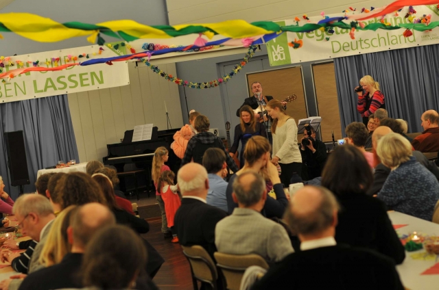 Unter dem diesjährigen Motto"Mit Genuss und Sinn - vegetarisch ins neue Jahr"lud der Vegetarierbund bereits zum 30. Mal zu einer großen Silvestertagung ein. 120 Menschen feierten auf diese Weise fleischfrei ins Jahr 2012. Auch Karen Duve, Bestsellerautorin von"Anständig Essen", ließsich die Tagung nicht entgehen.