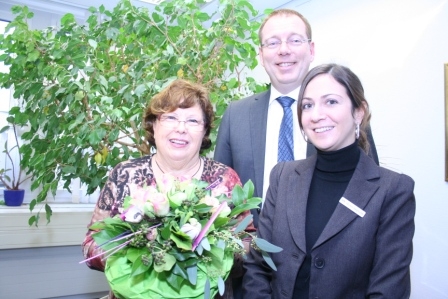 (IINews) - Auf eine vierzigjährige Tätigkeit bei der Rüsselsheimer Volksbank eG kann Frau Ingrid Flach zurückblicken. Ihre Laufbahn begann Frau Flach am 1. September 1971 als Servicekraft/Springerin bei der Rüsselsheimer Volksbank. Von 1996 bis 2009 war Frau Flach als Servicekraft in der Geschäftsstelle in der Virchowstraße tätig. Seit 2009 steht Frau Flach unseren Kunden als Mobile Servicekraft zur Verfügung. In einer Feierstunde am 09. Januar wurde der Jubilarin Dank und Anerkennung von Vorstand Josef Paul für die engagierte und erfolgreiche Mitarbeit und Betriebstreue ausgesprochen. Langjährige Mitarbeiter, die bei unseren Kunden gut bekannt sind, das ist gelebte Kundennähe. Für die Rüsselsheimer Volksbank einer der wichtigsten Erfolgsfaktoren.