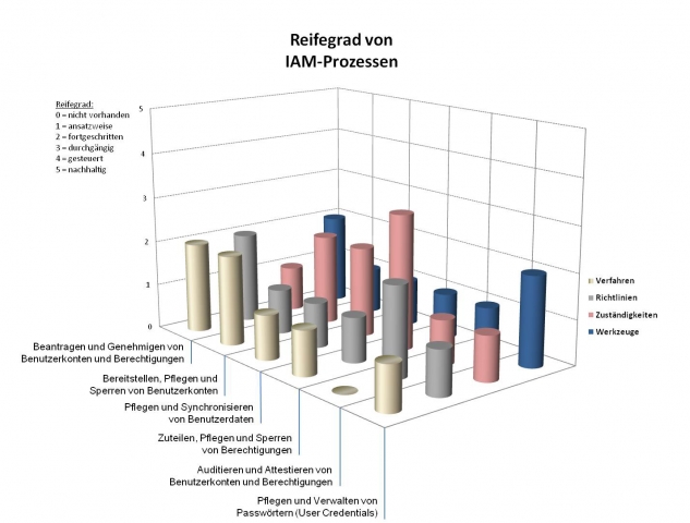 Der Vorteil von CMMI for IAM: Die Methodik identifiziert systematisch die unternehmensspezifischen Treiber oder Gründe für einen IAM-Bedarf und bewertet gezielt den aktuellen Reifegrad der betroffenen Prozesse im Unternehmen. Dadurch werden Schwachpunkte deutlich und Anforderungen lassen sich unabhängig von bestimmten Produkten spezifizieren. Auf verständliche, strukturierte Weise wird aufgezeigt, wo Potenziale für Prozessverbesserungen liegen.
