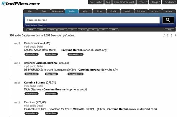 "FindFiles.net, die neue Suchmaschine für Musik und mehr"