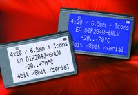 Neben einem alphanumerischen Zeichenvorrat von 240 Zeichen kann das Display auch 16 Icons darstellen - etwa Pfeile, technische Symbole etc. Damit lässt sich die Bedienung des zugehörigen Geräts weiter vereinfachen. Systementwickler können zudem bis zu acht eigene Symbole definieren, die sich wie alphanumerische Zeichen speichern und darstellen lassen. Für den Datenaustausch mit der Steuerlogik verfügt das Display über eine parallele Datenbus- und eine SPI-Schnittstelle.