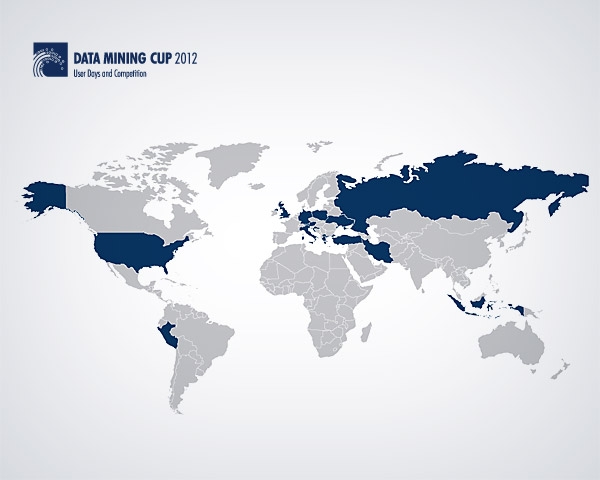 Bis dato haben sich bereits 49 Teams von 36 Bildungseinrichtungen und aus 15 Ländern für die Teilnahme registriert. Bis zur Deadline der Ergebniseinrichtung, d. h. bis 15.05.2012 können sich Interessenten noch für eine Teilnahme online unter http://www.data-mining-cup.de/de/dmc-wettbewerb/anmeldung/ anmelden.