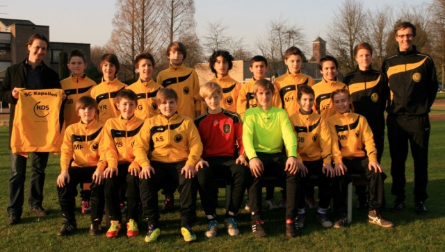 Pünktlich zur Rückrunde durften sich die Fußballer der D1-Jugend des SC Kapellenüber neue Trainingsanzüge freuen