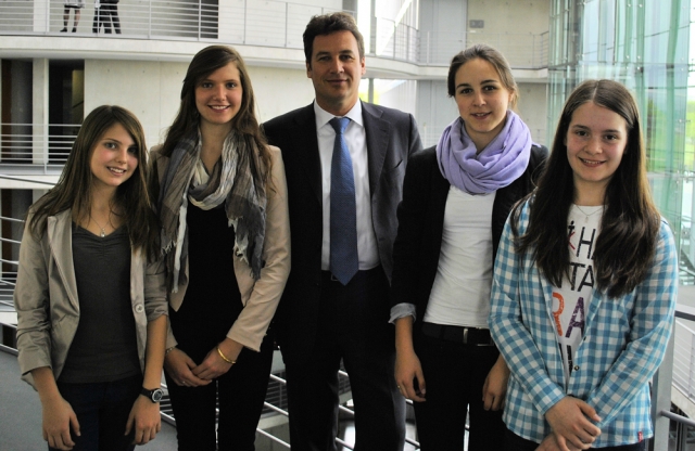 Berlin, den 26. April 2012 - In diesem Jahr erhielten vier Mädchen aus dem Wahlkreis Schwäbisch Hall-Hohenlohe einen guten Einblick in die Arbeit des Bundestagsabgeordneten Christian von Stetten. Bereits in den vergangenen Jahren hatte der Hohenloher von Stetten im Rahmen des Girls"Day Schülerinnen nach Berlin eingeladen und ihnen die Gelegenheit gegeben, die Funktionen des Deutschen Bundestages näher kennenzulernen.
