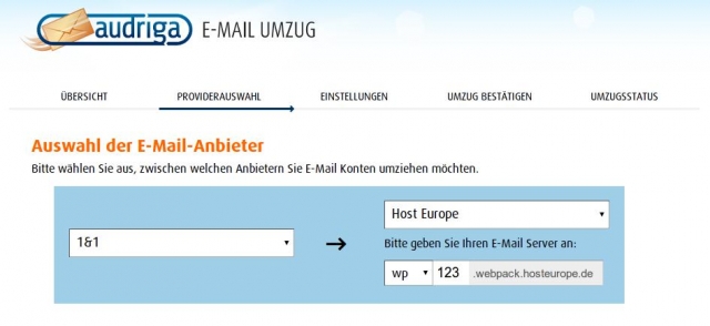 Host Europe ist der erste große Hostingprovider in Deutschland, der seinen Kunden den E-Mail-Umzugsservice von audriga anbietet. Der Umzugsservice unterstützt als Datenquelle alle E-Mail-Provider, die die Protokolle IMAP oder POP3 verwenden. Für die Anbieter 1&1, Strato, GMX und Web.de werden überdies Vorlagen mit voreingestellten Standardangaben angeboten, die den Umzug vereinfachen. Beim Umzug werden alle Ordner und E-Mails in dem Zustand in das Zielkonto kopiert, wie sie im Quellkonto beim Start des Umzugs vorliegen. Dabei werden sämtliche providerunabhängigen Eigenschaften, wie der Status einer E-Mail (gelesen/ungelesen) übernommen. Alle Mails werden beim Umzug mit SSL verschlüsselt und somit sicher übertragen.