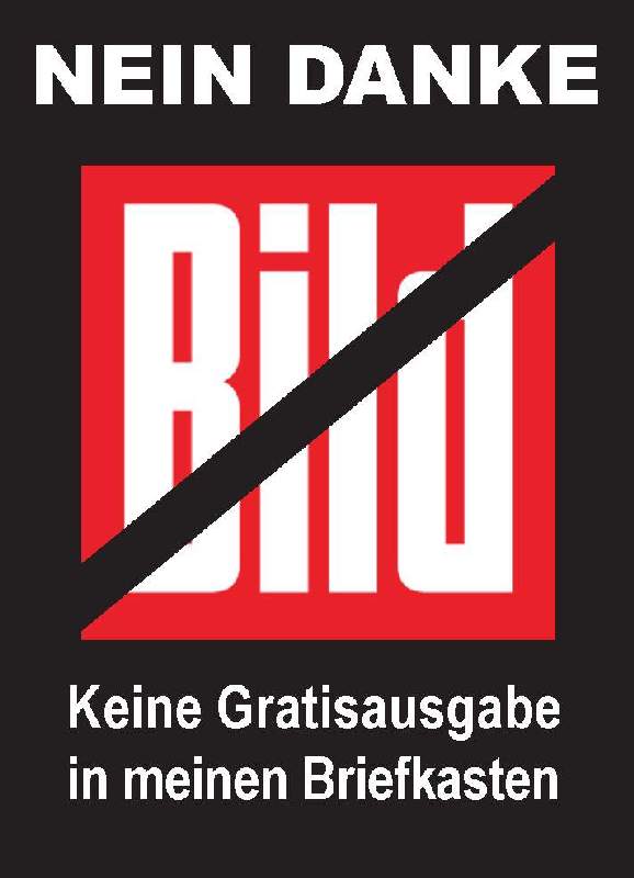 Die Webseite www.bildneindanke.de hat mit dem Online-Shop www.sauberdruck.de eine Aufkleber-Aktion gestartet. Explizit zu dieser Aktion werden Aufkleber für Briefkästen, Autoscheibe oder andere denkbare Untergründe verkauft. Das Motiv richtet sich genau gegen diese Aktion und ausschließlich gegen die Bild-Zeitung als Werbemedium.