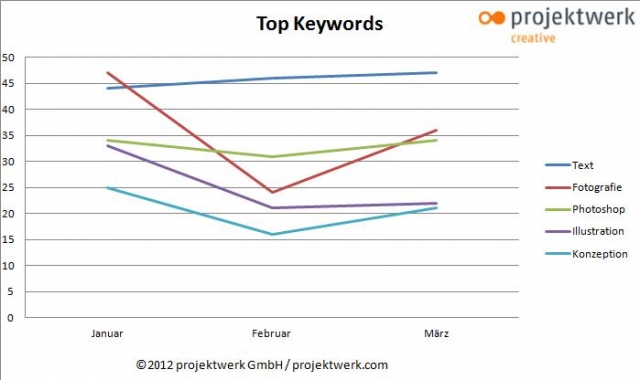 Hamburg, 25. Mai 2012. Das erste Quartal 2012 zeichnet sich durch starke Schwankungen in der Nachfrage nach Experten auf projektwerk creative aus.