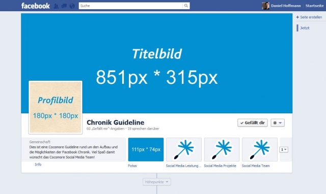 Nachdem das Social-Media-Team der Cocomore AG von Kunden und Kollegen ständig die Fragen "Wie groß ist denn das Facebook-Profilbild?" und "Wie groß ist ein Foto, wenn es bei Facebook gepostet wird?" beantwortet hat, informieren wir jetzt auf Facebook direkt, welche verschiedenen Bildformate es in einer Facebook-Chronik geben kann, so Hoffmann. Die große Anzahl unterschiedlicher Bildformate und die häufigen Änderungen, die durch Facebook vorgegeben werden, stellen oftmals ein Problem dar. Die von Cocomore initiierte Facebook Guideline zur Erstellung und zum Handling sämtlicher Grafiken und Bilder, die eine Unternehmensseite anzeigen kann, gibt eine wirkliche Orientierung, die immer up-to-date ist und einzigartige Hilfestellung bei der optimalen "Bespielung" ihrer Facebook-Präsenz bietet, erläutert der achtundzwanzigjährige Social-Media-Direktor von Cocomore abschließend.
