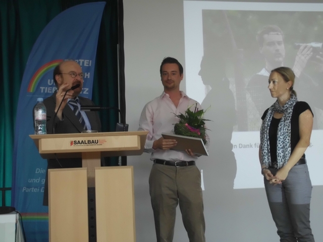In Frankfurt hat am 23.06.2012 die Partei"Mensch Umwelt Tierschutz"dem investigativen Journalisten Jan Peifer die"MUT-Medaille"für seine Enthüllungen im Bereich der industriellen Massentierhaltung verliehen. Auch"Sea Shepherd"-Gründer Paul Watson wurde mit der"MUT-Medaille"für seinen beispielhaften Einsatz zum Schutz der Weltmeere und ihrer Bewohner geehrt.