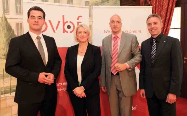 Kassel. - Die erste ordentliche Mitgliederversammlung des 2011 neu gegründeten Bundesverbandes Brandschutz-Fachbetriebe e.V. (bvbf) hat am 14. Juni 2012 im Europa-Park Rust Nicole Schulte-Frankenfeld zur neuen Verbandsvorsitzenden gewählt. Als Stellvertreter gehören dem Vorstand zudem Ludger Baukmann, Toni Thorwarth und Johannes Tröndle an.