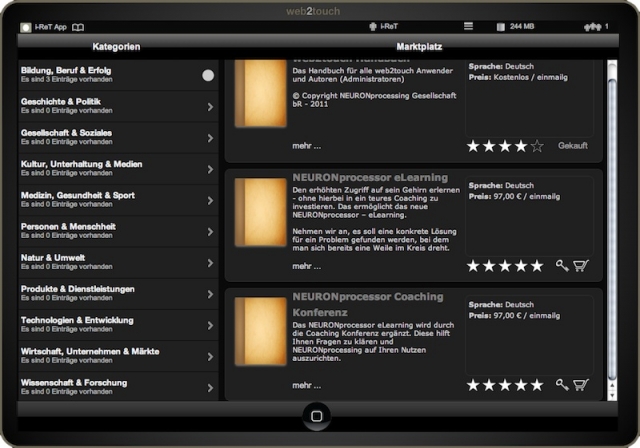 (IINews) - "Der Lernende interagiert mit virtuellen Lehrbüchern, die mediale Inhalte integrieren: Querverweise, Bilder & Grafiken und YouTube Filme. Zu jedem Lerninhalt kann der Anwender seine persönlichen Notizen in einem digitalen Notizbuch erfassen. Seine Übungen dokumentiert er in einem eigenen Logbuch. Web2Touch wurde mit einer komplexen Suchfunktion ausgestattet, welche auch das Speichern von Suchprofilen ermöglicht. Diese können z.B. für jeweils aktuelle Lernschwerpunkte genutzt werden", so Dirk Jacobasch, der Entwicklungsleiter und Mitgründer von NEURONprocessing.