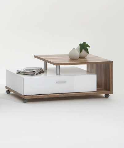 Dieser günstige und qualitativ hochwertige Couchtisch Solo 635-001 besticht durch seine Originalität. Die Farbkombination unterstreicht die Einzigartigkeit des Beistelltisches. Der innenliegende Teil des Couchtisches überzeugt durch die vorhandene Klappe, die Ihnen die Möglichkeit gibt, selbst in Ihrem Couchtisch einige Dinge zu verstauen. Die stabilen Rollen zeichnen die Flexibilität Ihres Tisches aus. Dieser Couchtisch ist ein Highlight in jedem Wohnbereich. Wir bieten Ihnen den, im Preis günstigen, Wohnzimmertisch sogar in 2 verschiedenen Dekoren an.
