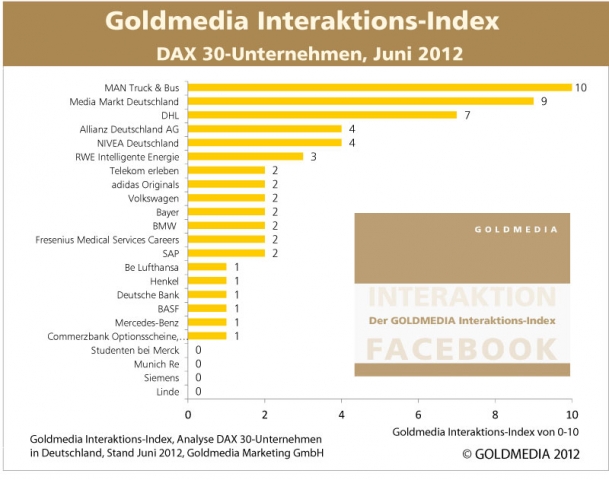 Goldmedia Interaktions-Index DAX30-Unternehmen Juni 2012: MAN Truck & Bus und Media Markt Deutschland führend