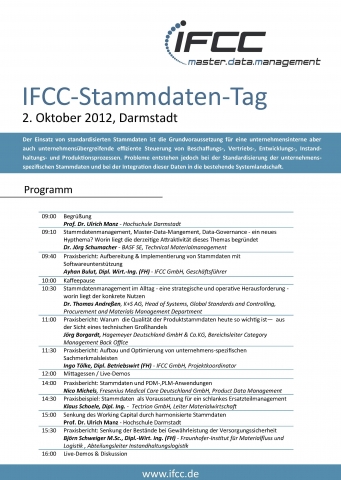 IFCC führender Stammdatenspezialist plant diese Veranstaltung - ausgewiesene Fachleute referieren - Praxislösungen stehen im Mittelpunkt
