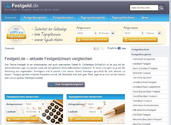 Das Finanzportal Festgeld.de bietet unabhängige Vergleiche und Ratgeber mit Fachwissen über Festgeld und Tagesgeld. Umfangreiches Vergleichsportal für Sparer und Anleger, welche sich über aktuelle Zinssätze und Entwicklungen im Tages- und Festgeldbereich informieren wollen.