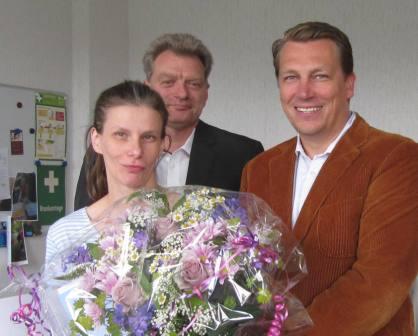 Berlin, den 01.08.2012. Über 230 Mitarbeiter sind derzeit für BALLY WULFF, dem Traditionsunternehmen aus Neukölln, tätig. Eine davon ist Gabriela Thiers, die diesen Juli ihr 25-jähriges Jubiläum feierte und mit einer Ehrennadel und Blumen geehrt wurde.
