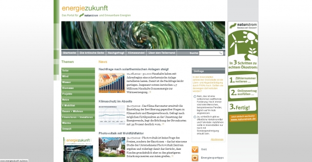 (IINews) - Düsseldorf, 3. August 2012. Mit dem neuen Onlineportal energiezukunft.eu bietet der Ökostromanbieter naturstrom ab sofort ein Nachrichten- und Hintergrundmagazin rund um alle Themen aus dem Bereich der Erneuerbaren Energien. Eine eigene Redaktion liefert tagesaktuelle Meldungen, Hintergrundberichte und Reportagen.
