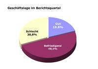 Die unerwartet schwache Auftragsentwicklung in den letzten Monaten drückt erheblich auf die Stimmung der Laborinhaber. Rund ein Drittel der teilnehmenden Labore schätzt seine Markt- und Wettbewerbslage als schlecht ein. Lediglich 19,8 Prozent der befragten Betriebe bewerten die Geschäftslage im Berichtsquartal als gut. Im Vorquartal waren es 25,1 Prozent. Für das III. Quartal rechnen die Labore, saisontypisch wegen der langen Ferienzeiten, mit geringen Umsätzen.