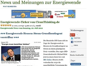 "Neu: CleanThinking erweitert Angebot um Energiewende-Ticker"
