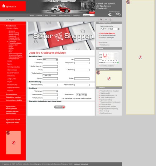 Die Betrüger locken ihre Opfer dabei auf eine Webseite, die täuschend echt aussieht. Als Lockmittel kommen vermutlich Mails zu Einsatz, in denen Nutzer aufgefordert werden, ihre Kreditkarte über den eingefügten Link zu aktivieren bzw. nach Wartungsarbeiten zu reaktivieren. Auf der manipulierten Webseite, auf die die Nutzer geleitet werden, weist nichts auf eine Fälschung hin, denn der gesamte Inhalt der Original-Seite ist hier integriert, u.a. inklusive Werbeanzeigen und Aktien-Diagramme.