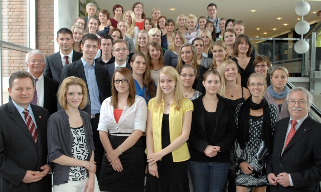 In seinem Grußwort ermunterte der Staatssekretär die Jahr-gangsbesten: "Nehmen Sie den Schwung, die Entschei-dungsfähigkeit und das Verantwortungsbewusstsein aus Ihrer erfolgreichen Ausbildung mit auf Ihren weiteren beruflichen Weg. Wenn wir mit der Entwicklung Schritt halten wollen, müssen wir uns weiterbilden. Die Kultur des Wandels ist all-gegenwärtig. Gefragt sind Veränderungsfähigkeit, Konflikt- und Kommunikationsfähigkeit."