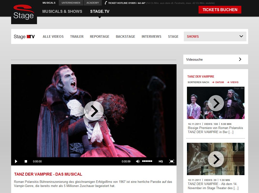 VideoManager 6 für neuen Web-Auftritt www.musicals.de von Stage Entertainment