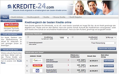 Seit nunmehr bereits mehr als sechs Jahren informiert der aktuelle Kreditvergleich www.kredite-24.com über die besten Privatkredit Angebote. Nach Redesign, gründlicher Erneuerung und Neustart ermöglicht es nun auch einen sehr komfortablen und leistungsstarken Kreditvergleich. Doch es ist nicht allein die ansprechende Aufmachung, die es zu den besten Anbietern dieses Services macht. Hinter den freundlichen Farben, der klaren Struktur und der leichten Bedienbarkeit steckt eine breite Funktionalität. Neben dem hilfreichen Kreditrechner und dem Kreditvergleich (Zinsen, Monatsraten) findet der Suchende weitere umfangreiche Hilfen und umfassende Infos rund ums Thema Privatkredite.