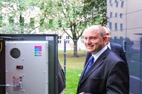 "Dieses Haus ist mit dem Modernsten vom Modernen ausgestattet - und das haben wir noch kombiniert mit Elektromobilität", betonte Bundesbaustaatssekretär Rainer Bomba anlässlich der Übergabe von zwei BMW-Elektrofahrzeugen am 11. September an die im Gebäude wohnende Familie. Bomba weiter: "So sieht das Wohnen und Fahren in der Zukunft aus."