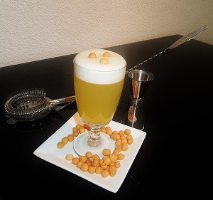 Zubereitung: Das Glas vorkühlen. Alle Zutaten in den Shaker geben. Dann kurz und kräftig ohne Eis shaken, damit sich das Eiweiß mit den restlichen Zutaten verbinden kann. Dann erst Eis in den Shaker geben und nochmals kräftig shaken. Über einem feinen Sieb in das vorgekühlte Glas gießen. Mit drei www.land-leben.com Backerbsen dekorieren. Santé.