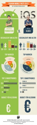 München, September 2012 - Auf das Budget kommt es an: Erwachsene leisten sich ein iPhone, die jüngere Generation eher ein Android-Smartphone. Zu diesem Ergebnis kommt der "MyBestBrands Fashion Contest". Über 500.000 Sessions mit der kostenlosen iPhone- und Android-App von MyBestBrands wurden ausgewertet. Das Ergebnis: Die iPhone-Nutzer interessieren sich für hochwertige und klassische Marken wie Hilfiger, Burberry und Boss, während die Android-Fraktion junge, coole Marken wie Bench, Converse und G Star bevorzugt.