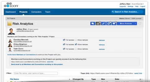 Mittels Soonr Workplace können Teams von jedem beliebigen Endgerät aus gemeinsam digitale Dateien austauschen bzw. Inhalte bearbeiten. Dabei ist Workplace das Basis-Tool, um alle Informationen über das Netz zur Verfügung zu stellen. Alle Daten sind in Europa gespeichert, und es gelten rechtlich europäische Datenschutzbestimmungen. Die Übertragung basiert auf einer hochsicheren, verschlüsselten Verbindung.