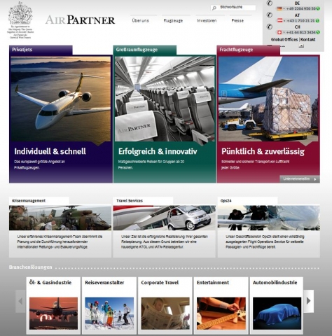 "Unternehmenswebsite von Air Partner im neuen Gewand"